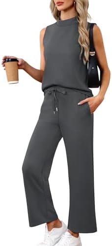 Casly Lamiit Women Two Piece Travel Outfits 2025 Summer Lounge Sets Matching Airport Outfit Turtle Neck Top Wide Leg Pants